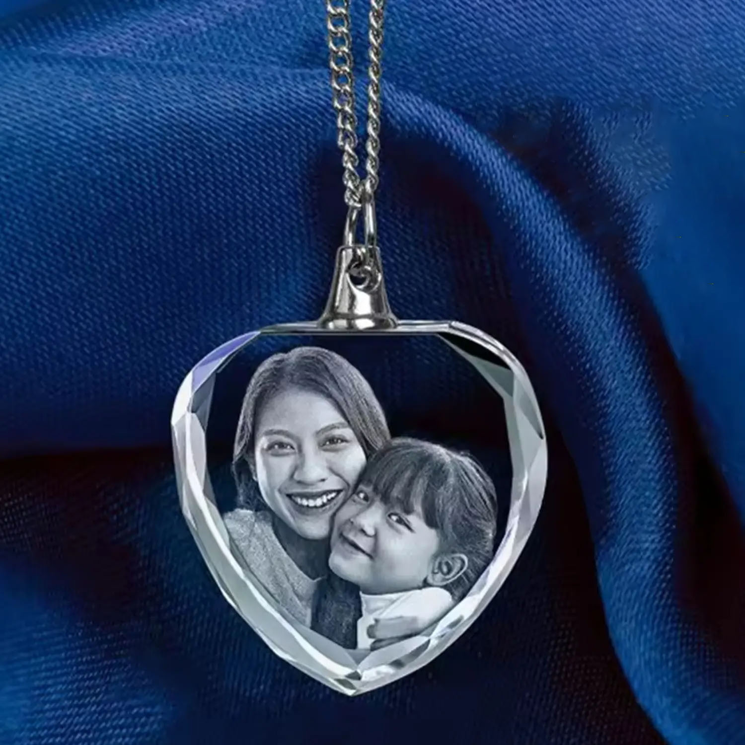 Capture your most cherished memories in stunning 3D detail with this elegant crystal necklace. Each piece features a custom photo engraved deep within premium crystal using advanced 3D laser technology, creating a mesmerizing effect that reveals your image from every angle. The crystal pendant hangs from a delicate chain, making it a timeless keepsake perfect for anniversaries, birthdays, or honoring someone special. Lightweight and durable, this personalized necklace combines modern craftsmanship with sentimental value — a wearable treasure that tells your story.